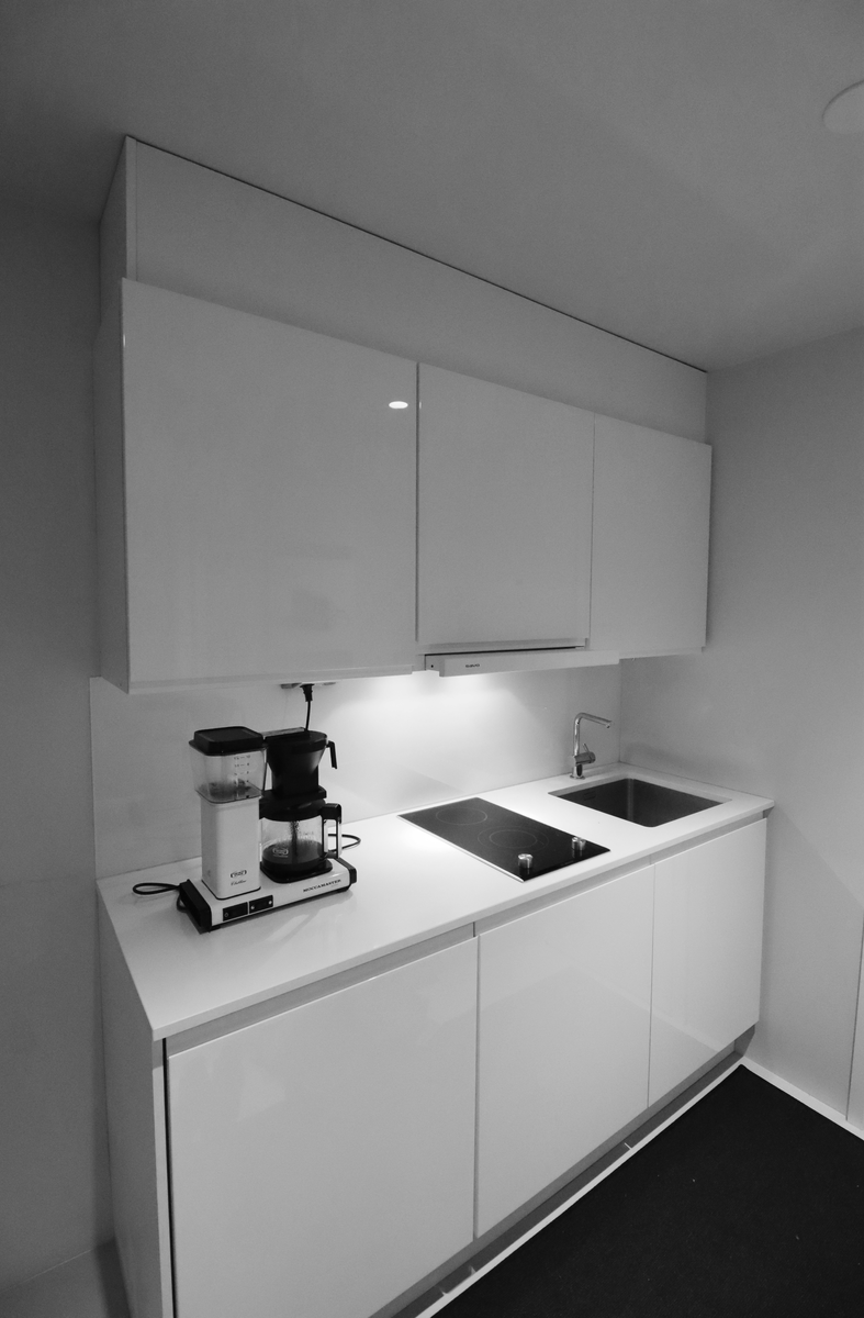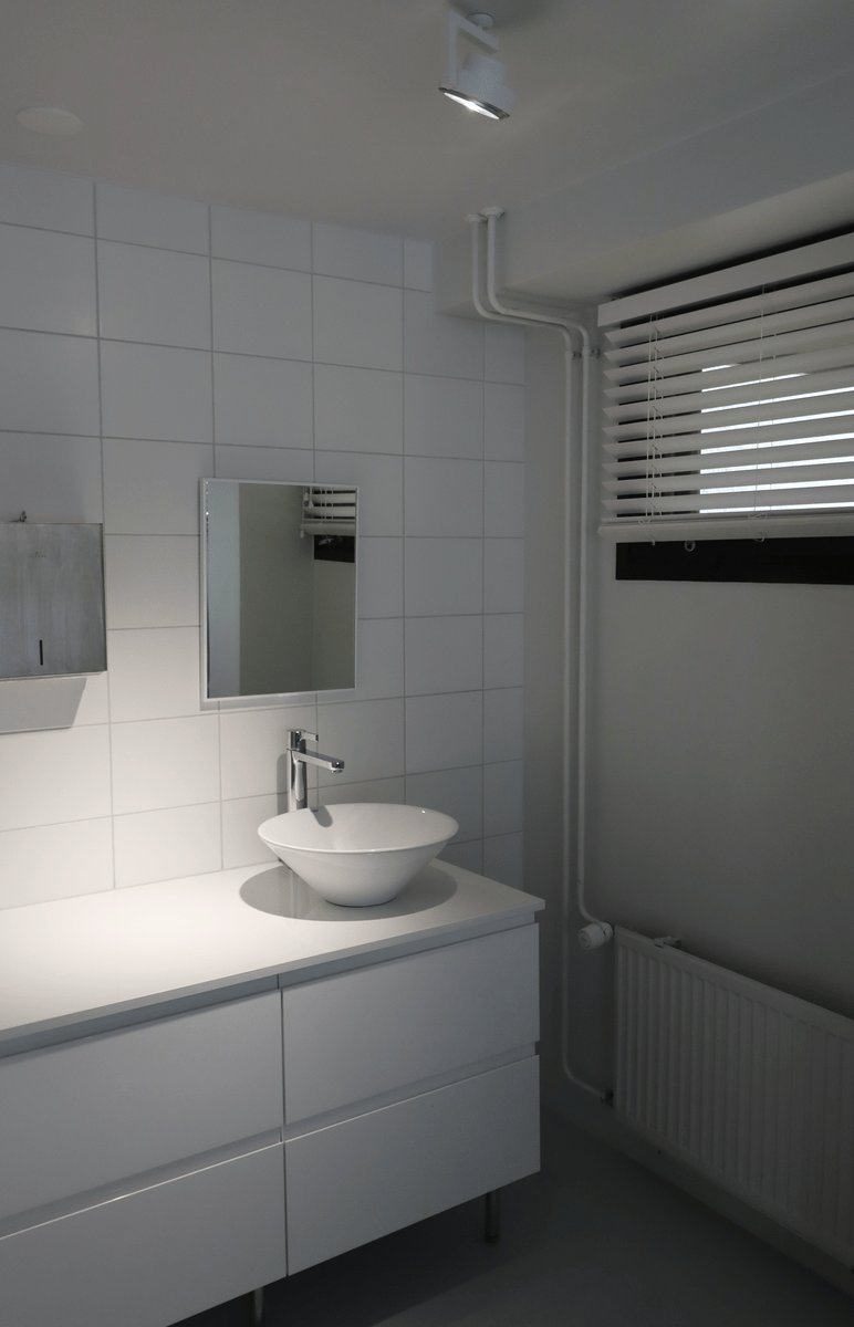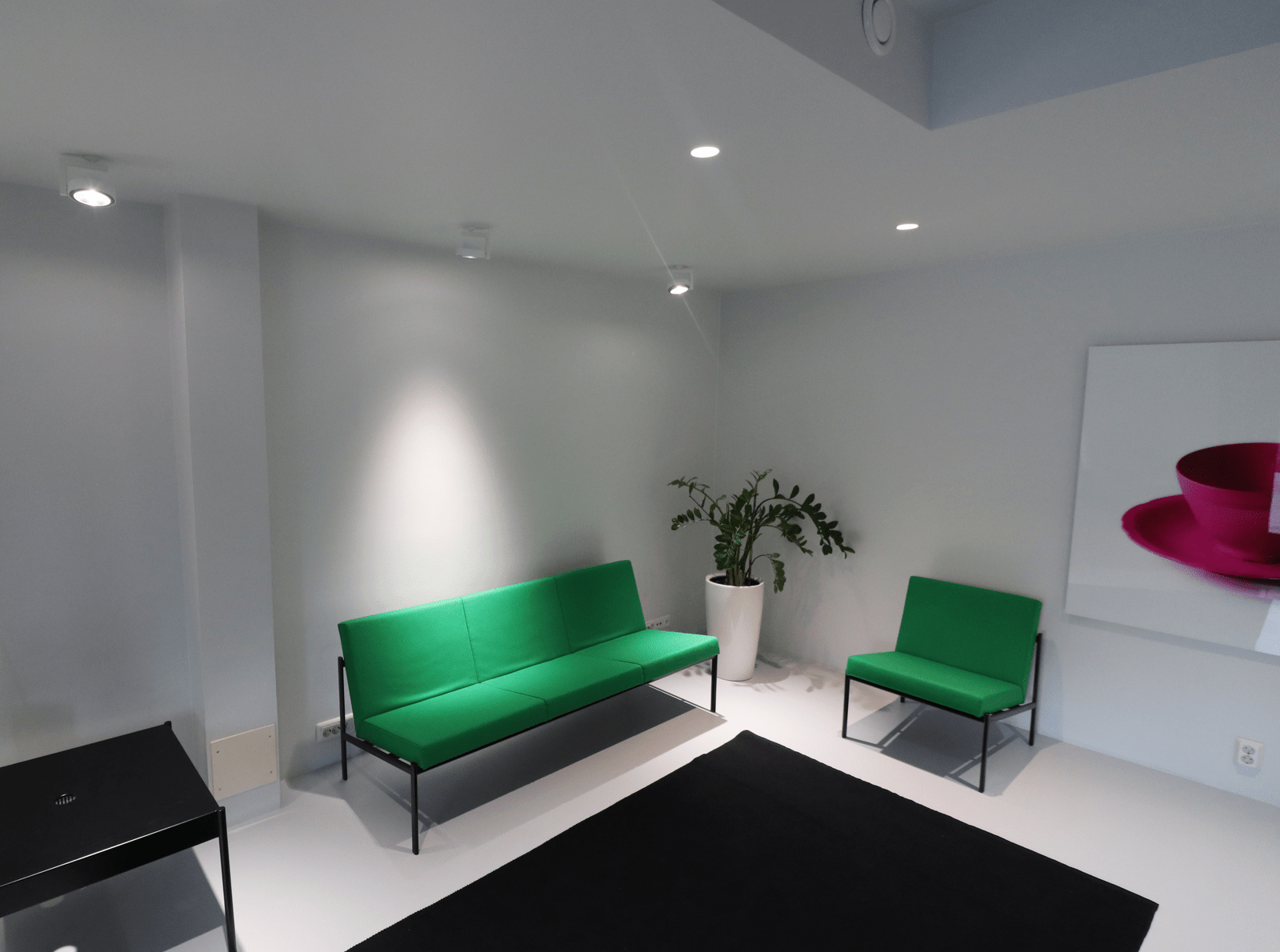 Olohuone | Kaikissa tiloissa SikaFlex julkisten tilojen lattiapinnoite. Seinät maalattu. |