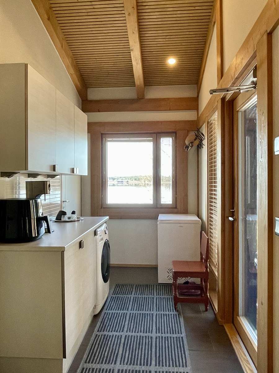 | Kodinhoitohuone | Seinät: maalattu Varusteet: pesukone, pesukoneliitäntä, lattialämmitys, pöytätaso Lattia: laatta |