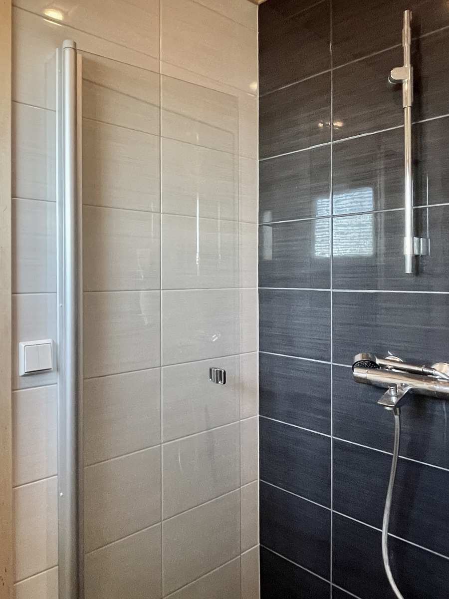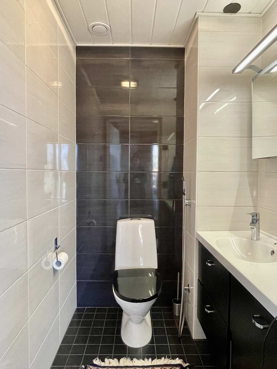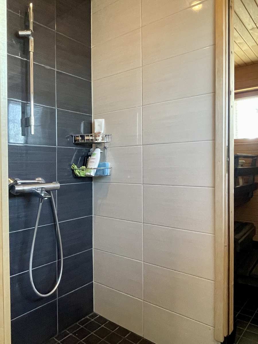 | Kylpyhuone | Varusteet: suihkuseinä, lattialämmitys, suihku, kiinteät valaisimet Seinät: kaakeli Lattia: laatta |