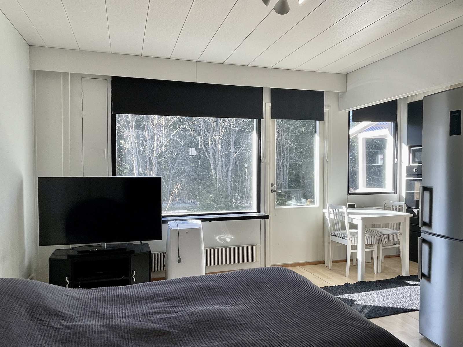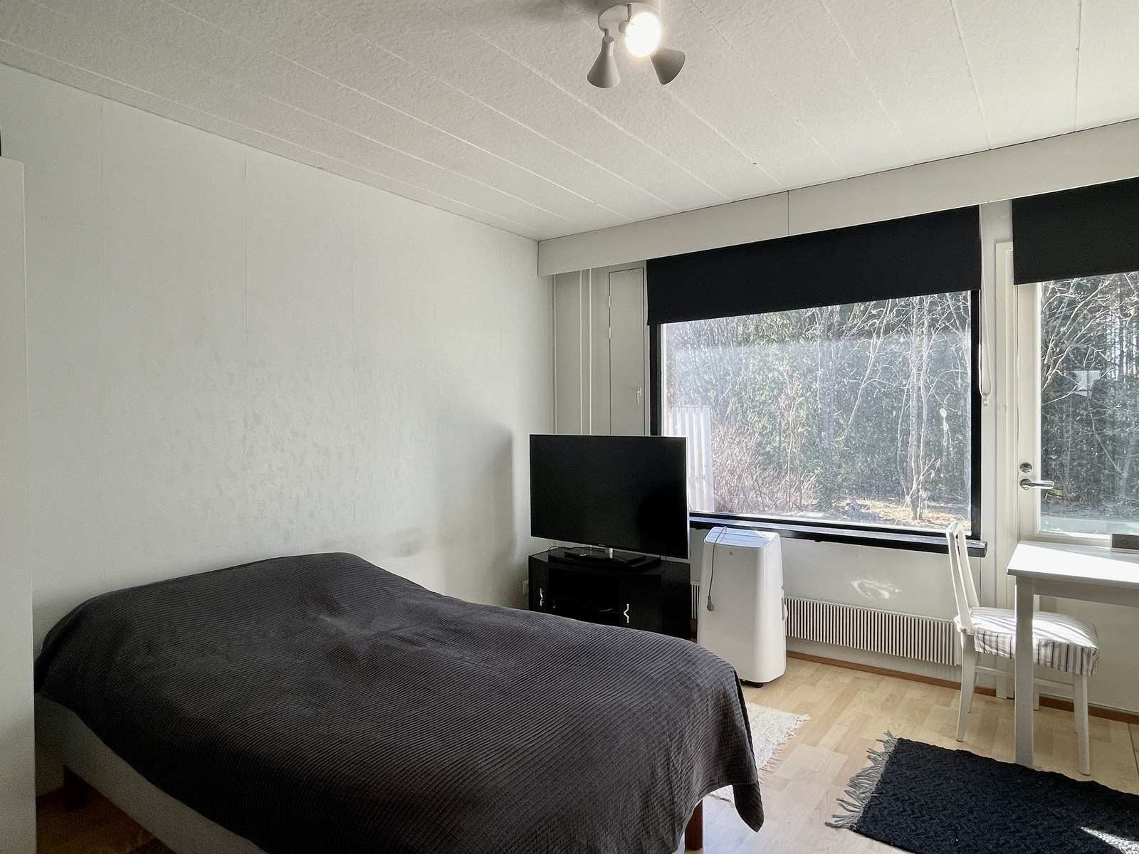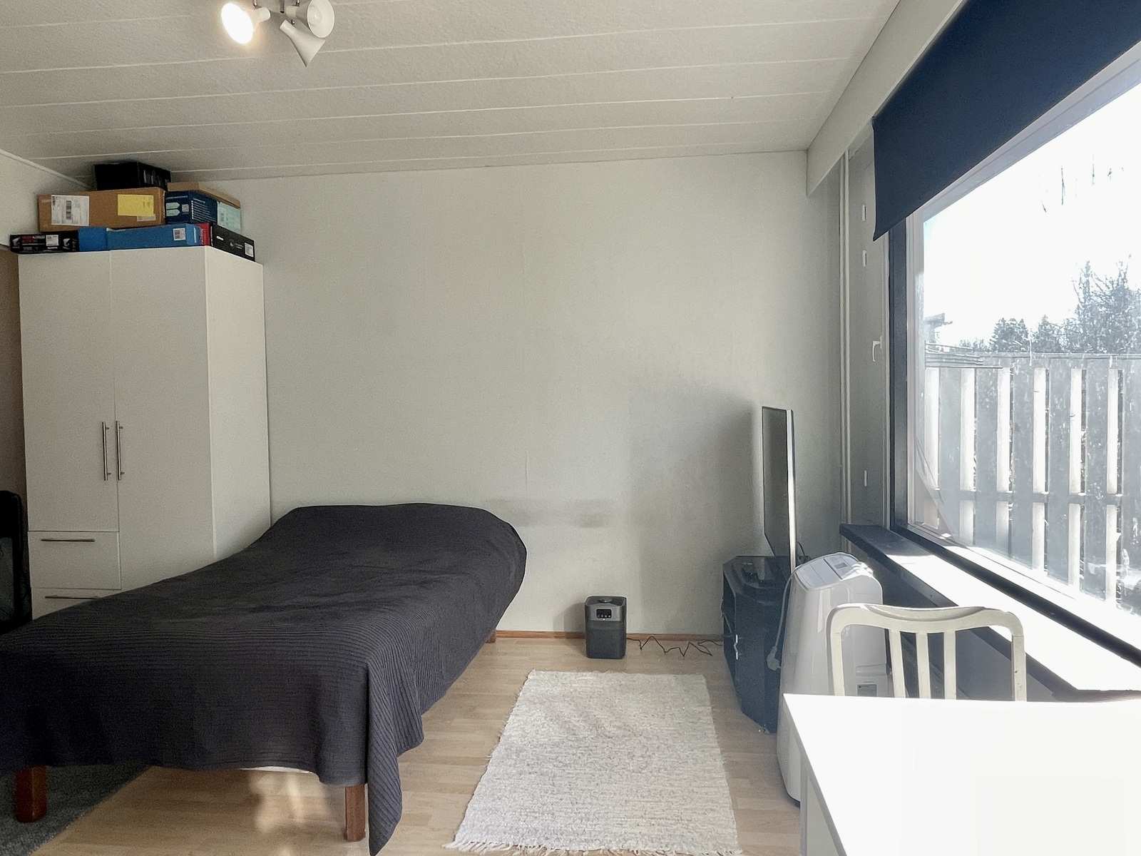 | Olohuone | Asuinhuoneen yhteydessä alkovi, jossa maalatut seinät ja pieni yläikkuna etupihan puolelle. Seinät: maalattu Lattia: laminaatti |