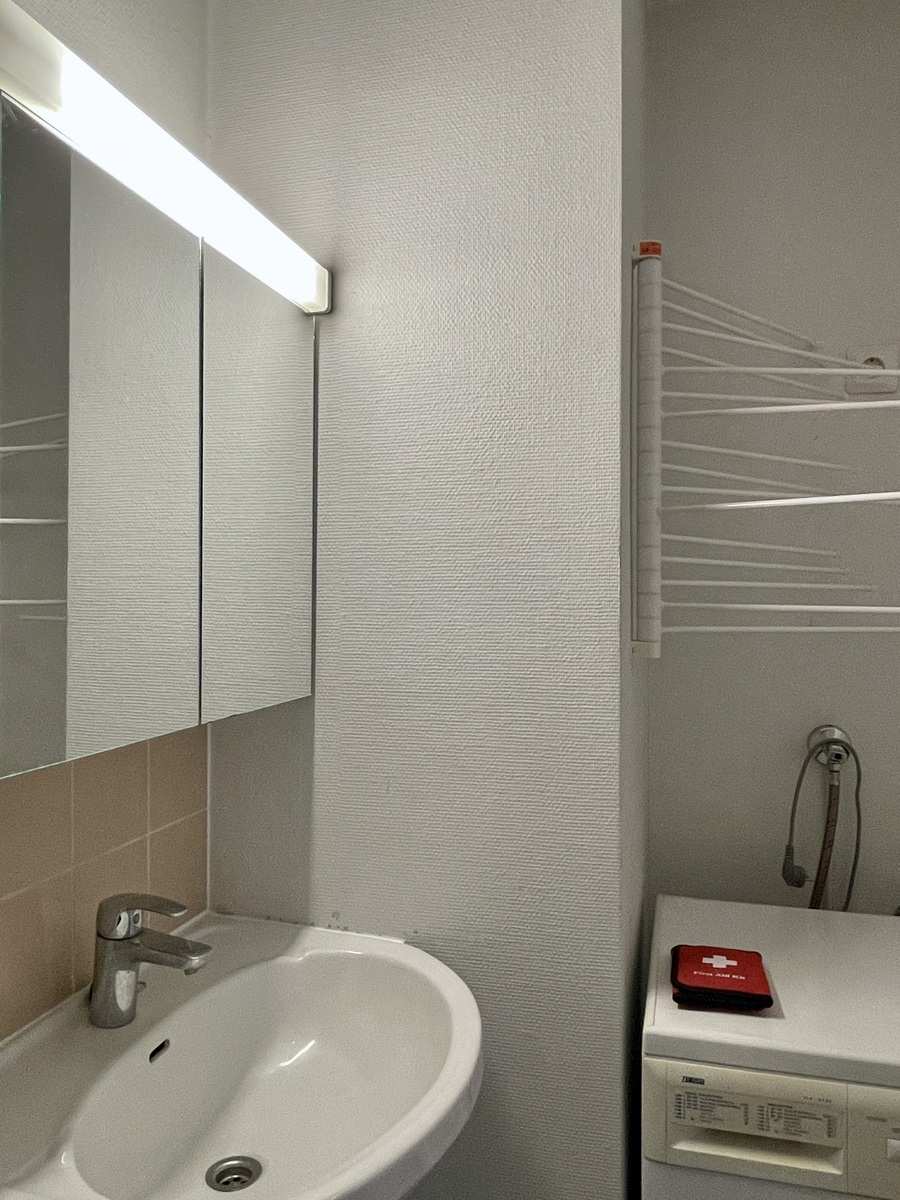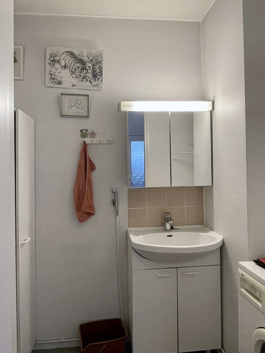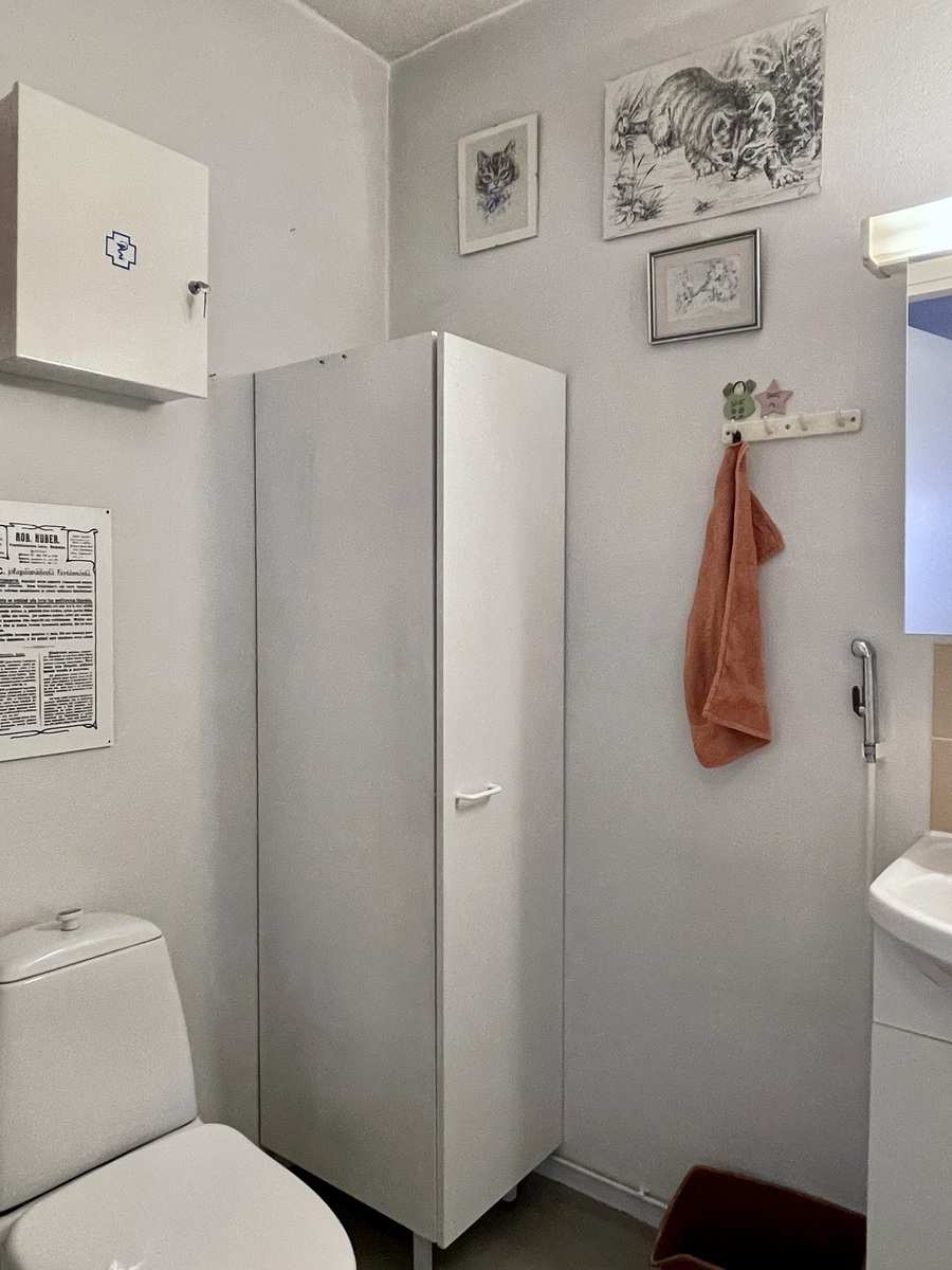| Erillinen WC | Lattia: muovi Varusteet: pesukoneliitäntä, lattiakaivo, peilikaappi, bidee-suihku Seinät: maalattu, lasikuitutapetti Lukumäärä: 1 |
