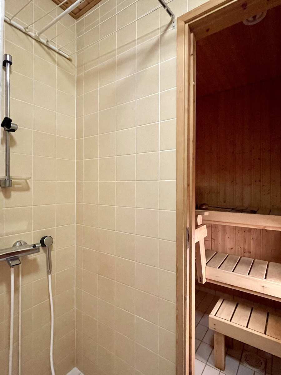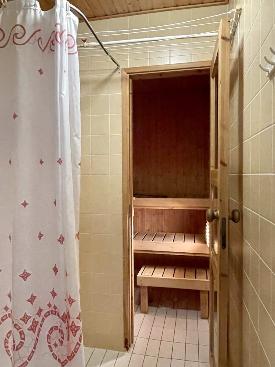 | Saunan pinnat | Seinät: puu Lattia: laatta |