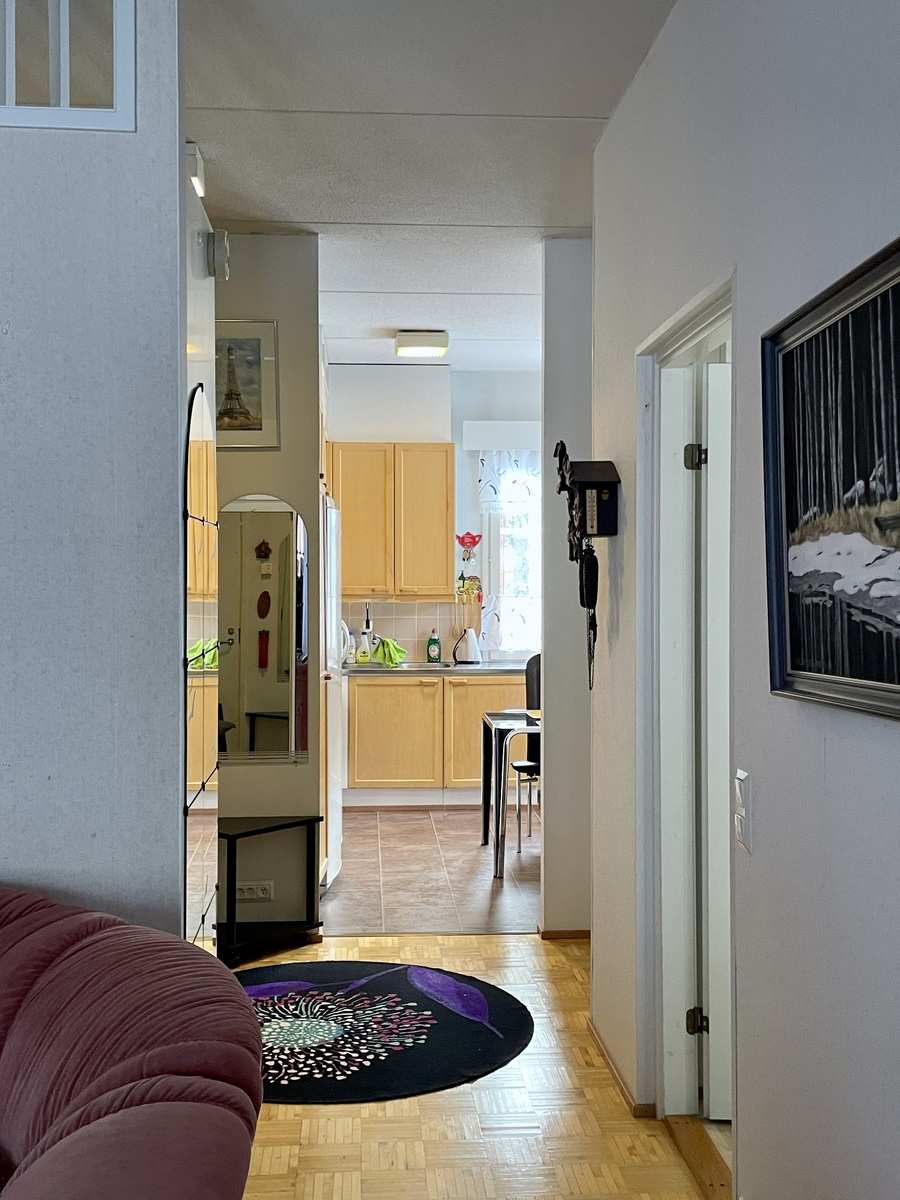| Yleiskunto | Asunnossa on normaalista asumisesta johtuvaa kulumaa. Merkittäviä remontteja ei ole tehty. Makuuhuoneiden lattiapinnat on uusittu yläkerrassa sattuneen vesivahingon vuoksi. |