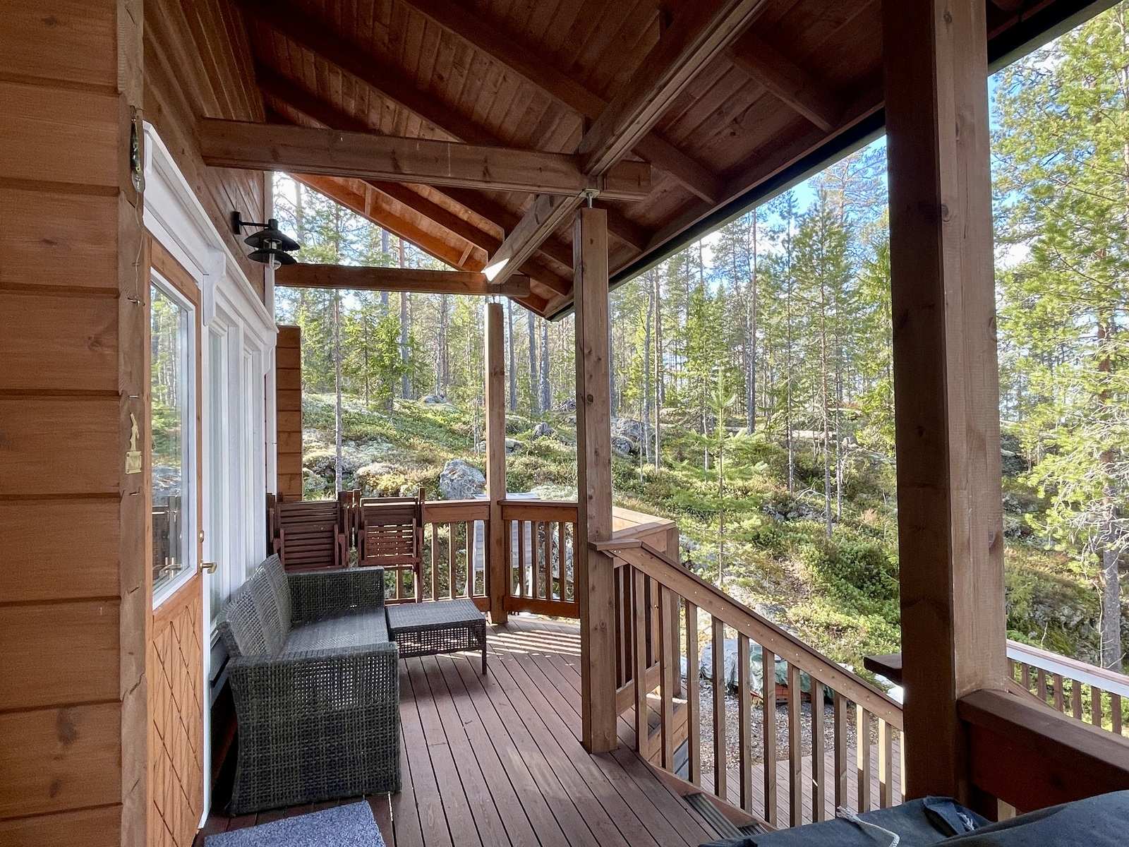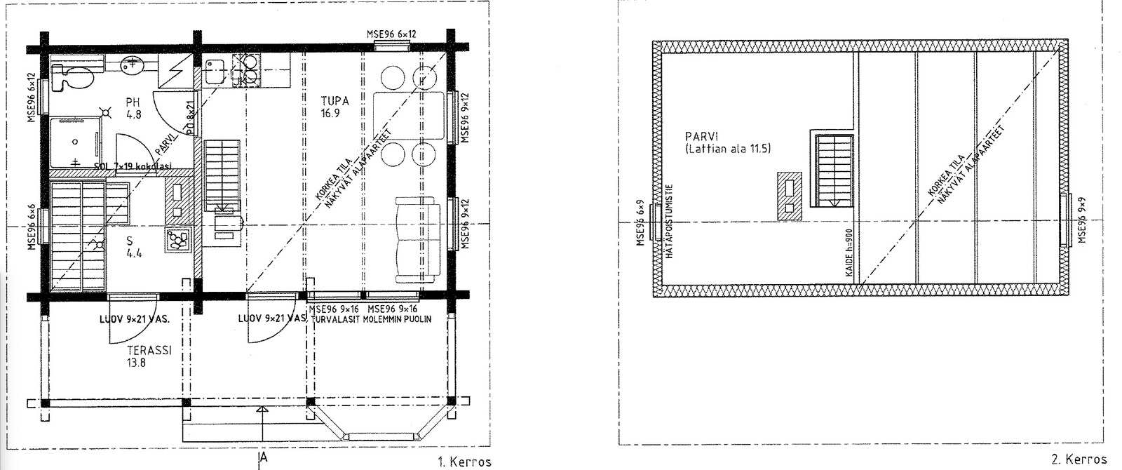 | Rakennusmateriaali | Puu, hirsi Lamellihirsi 135 mm tasakertaan, parviosa puurankarunkoinen. |