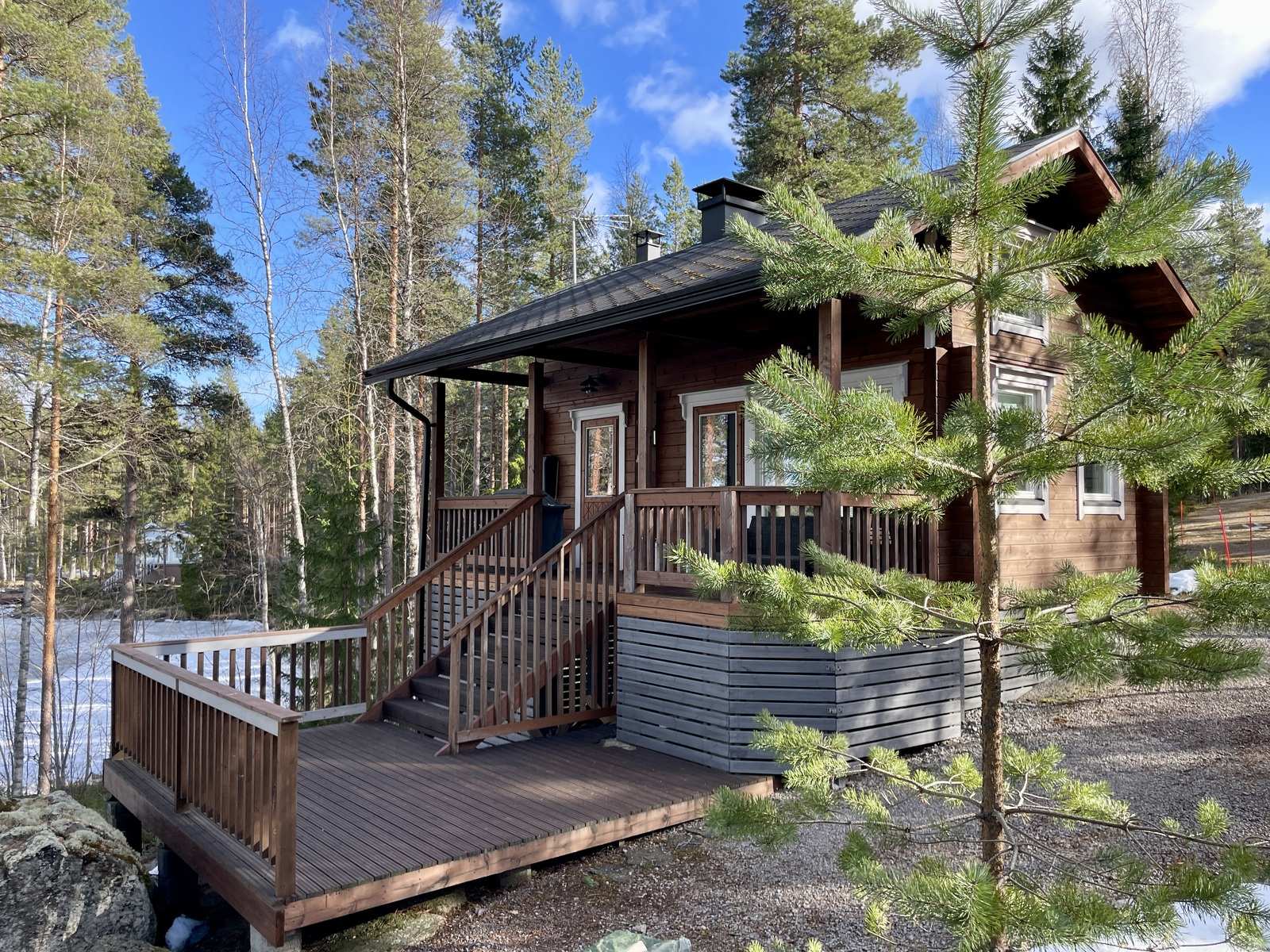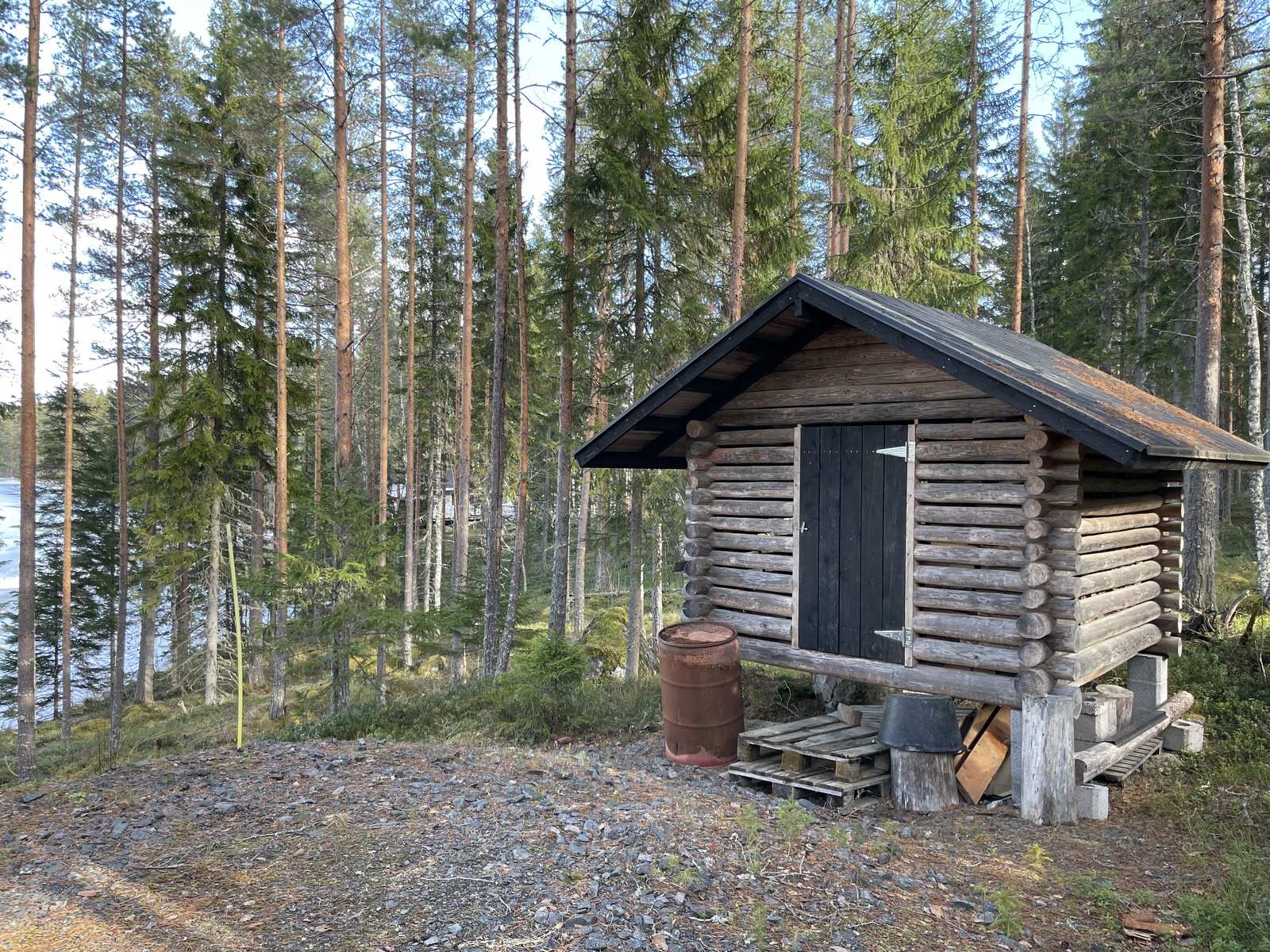 6650 m2:n rantatontti avautuu ilta-auringon suuntaan pohjoiseen, omaa rantaa on noin 100 metriä. Tontti on kallioperäinen ja kulkuväyliä lukuunottamatta luonnontilainen. Lamellihirsinen saunamökki (Kontiotuote, malli Nalle 30A) on rakennettu lähinnä kesäkäyttöön. Mökissä on tupakeittiö, sauna ja pesuhuone / wc. Lisätilaa on parvella. Mökissä on sähkölämmitys patterein, pesuhuoneessa ja saunassa lattialämmityksenä. Tupakeittiössä Porin Matti ja saunassa puulämmitteinen kiuas. Mökin edessä on kaksi terassialuetta ja saunasta pääsee suoraan terassille. Mökkiin tulee kunnan vesi ja jätevedet on johdettu lain mukaisesti.
