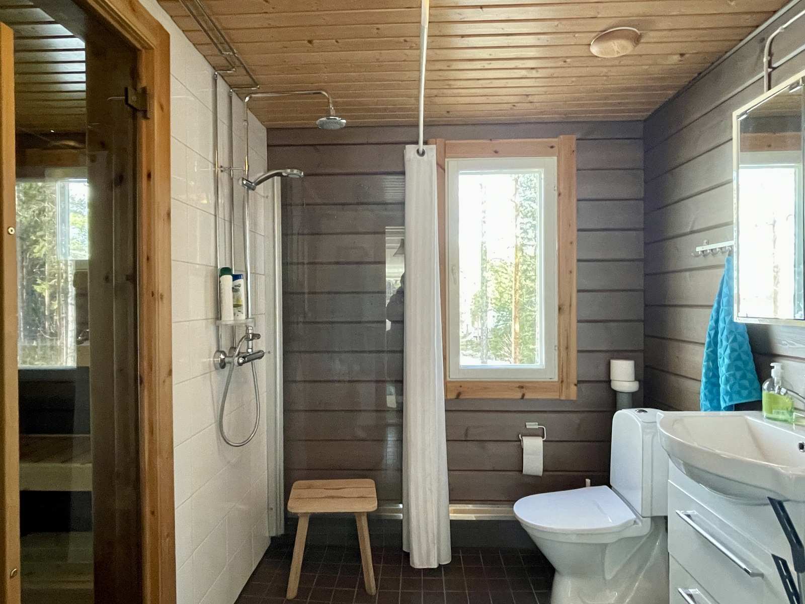 | Saunan pinnat | Seinät: puu Lattia: laatta |