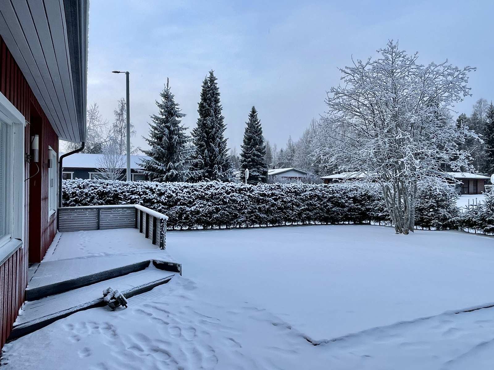 | Tehdyt korjaukset ja remontit | 2012-2014 kaikki lattiapinnat purettu, lattiat tasoitettu ja ja pintamateriaalit uusittu, sisäseinät uusittu, vaatehuone purettu pois, vaatehuoneen, wc:n, pesuhuoneen ja saunan lattiat avattu ja asennettu vesikiertoinen lattialämmitys. Pinnat ja kalusteet uusittu. Tuulikaappi purettu pois, keittiön sisäänkäynti muutettu, kaikki keittiökaapistot ja kodinkoneet uusittu. Vesikate uusittu. 2013 yläpohjaan lisätty lämmöneristettä. Takapihalle tehty terassi. Sadevesiviemäröinti asennettu ja liitetty pihan kahdelle sivulle samaan aikaan tehtyyn pihan salaojitukseen. Sisälle uusittu kaikki sähkölaitteet ja sähkötaulu. 2014 etupihalle terassi. 2017 ilmalämpöpumppu 2020 lämmönjakohuoneessa ja lähiympäristössä ollut vesivahinko, jok akorjattu ja rakenteet kuivatettu tehdyn vahinkoraportin suositusten mukaisesti. 2021 tai 2022 asennettu eteiseen huonekohtainen ilmanvaihtokone. 2025 talo ja autokatos maalattu, talon katolle asennettu lumiesteet. |