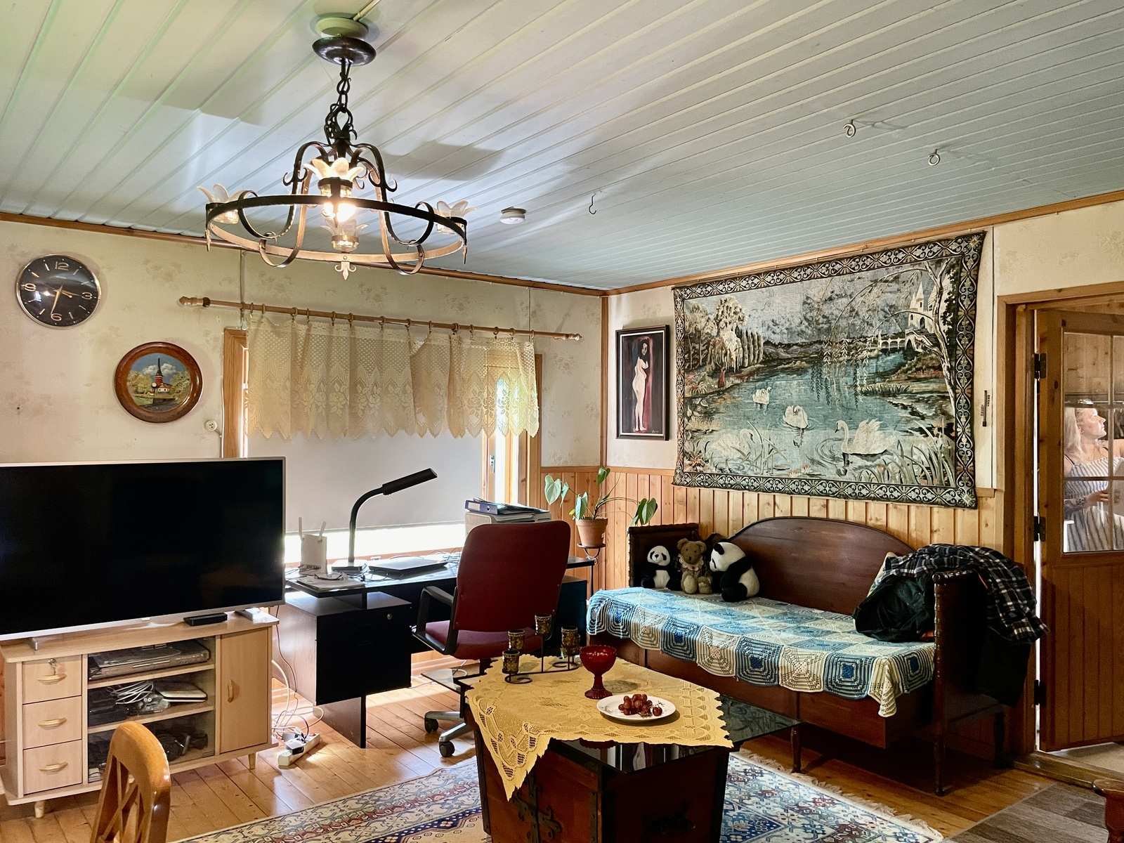 Olohuone | Seinät: puu, tapetti Lattia: lauta |
