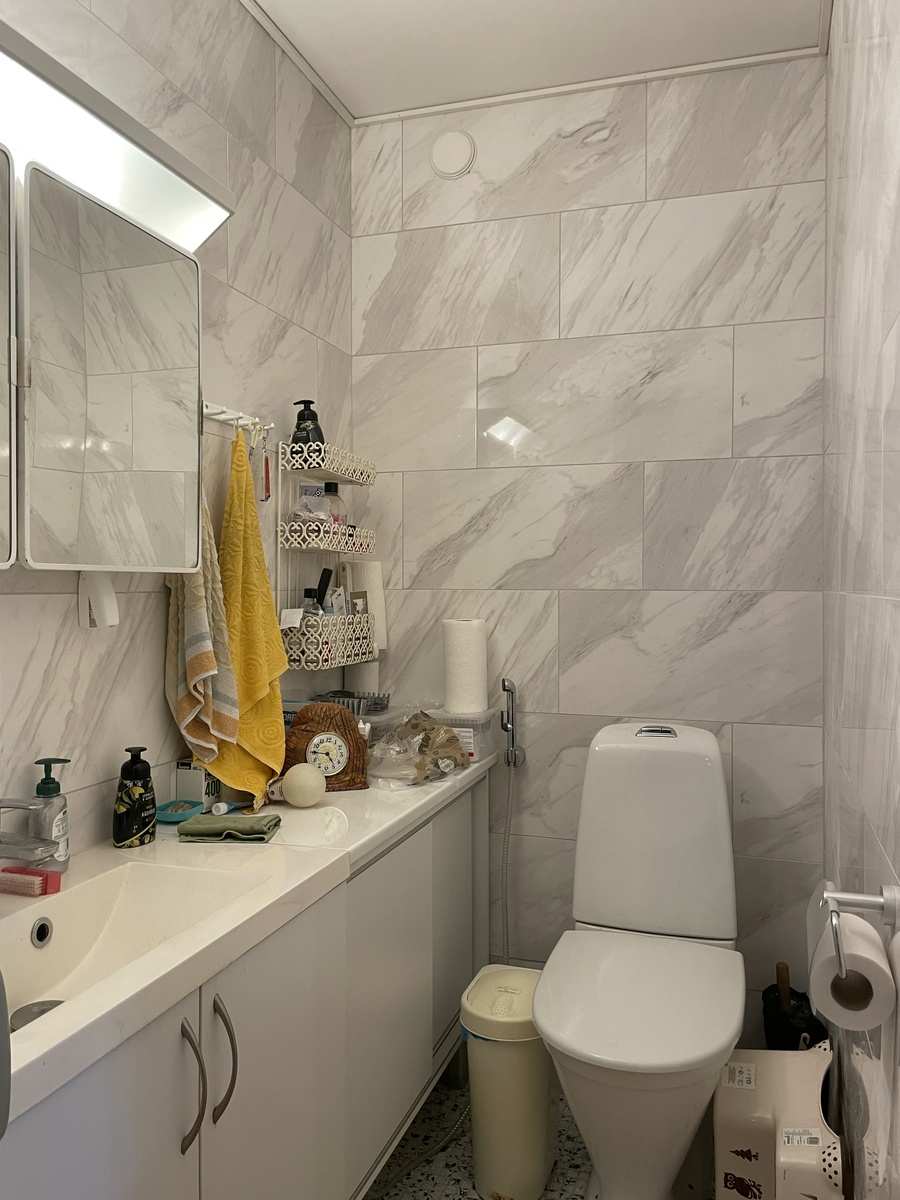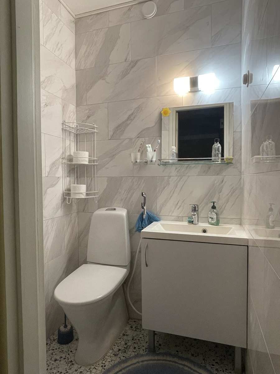 Erillinen WC | Lattia: laatta Varusteet: peilikaappi Seinät: kaakeli Lukumäärä: 2 |