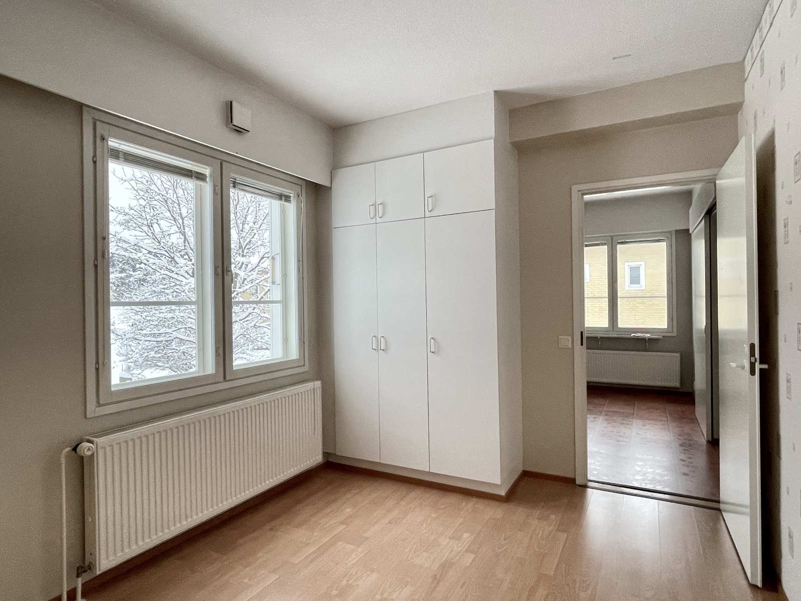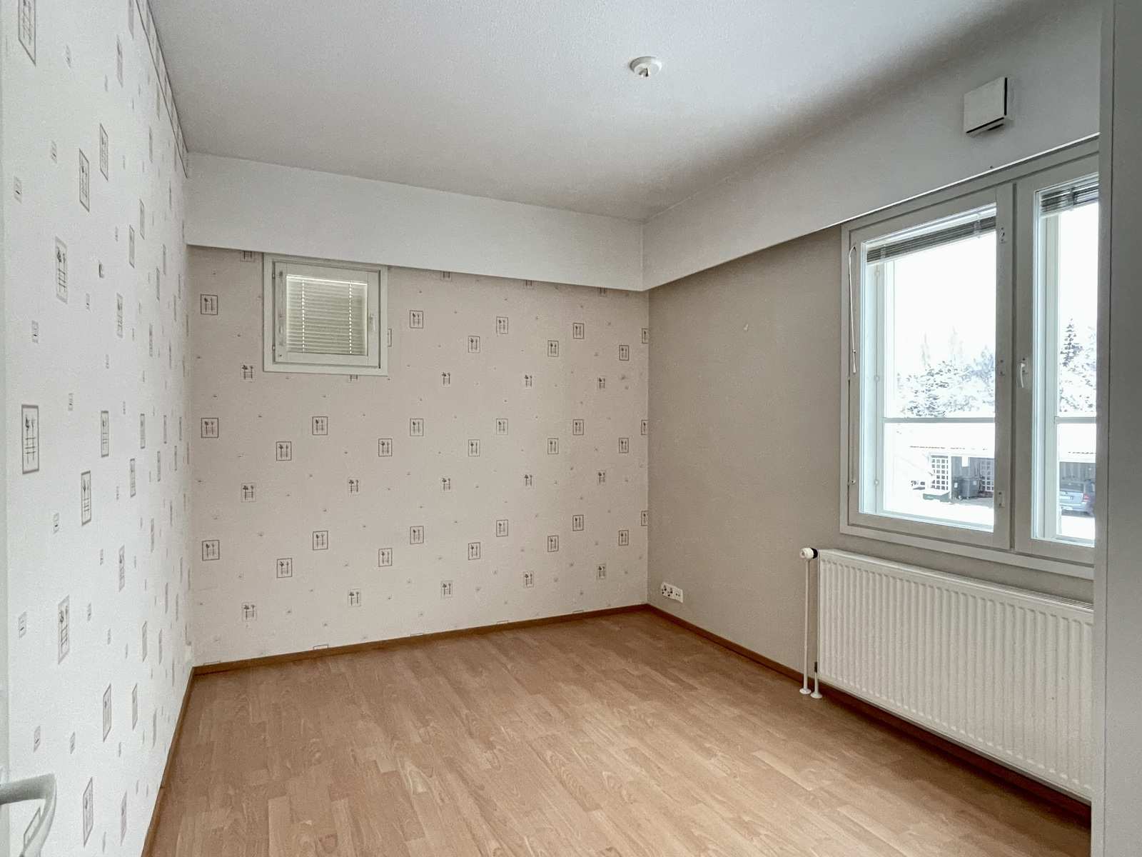 | Makuuhuone | Seinät: tapetti Lattia: laminaatti |